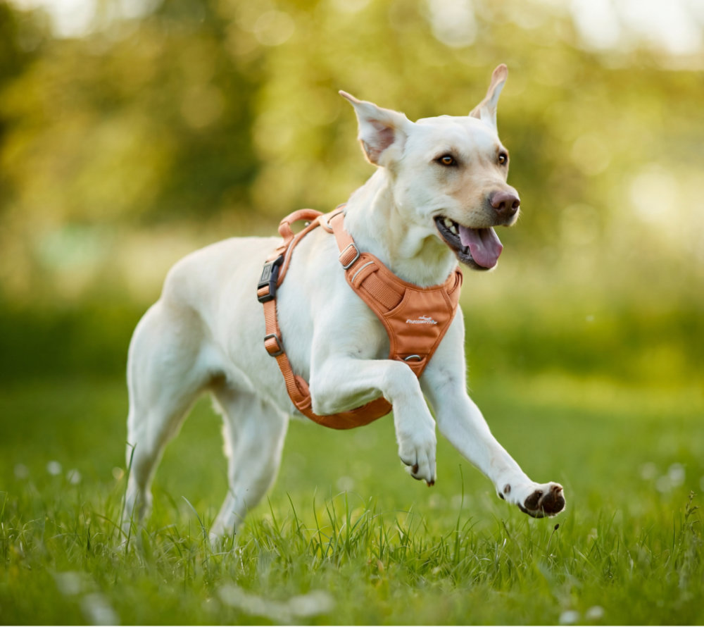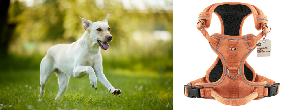 Ein Produktbild von diesem Hundegeschirr und ein Motiv aus meinem Bildarchiv wurden zu einem realistischen Ergebnis kombiniert.